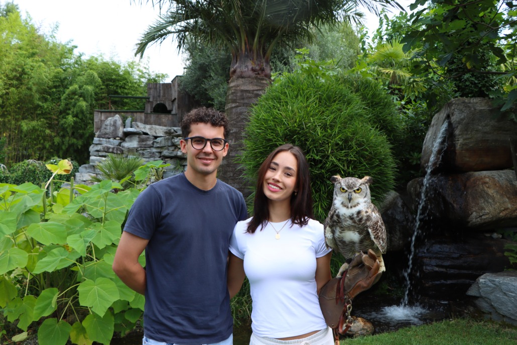 Alla Falconeria di Locarno, esiste l’opportunità di fare una foto ricordo insieme al gufo virginiano, all’aquila americana o al falco giocoliere sul proprio pugno, in totale rispetto dell’animale.