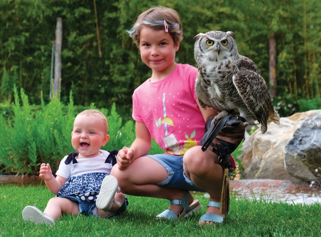 La fauconnerie de Locarno, vous donne l’occasion de poser pour une photo souvenir avec le grand-duc d’Amerique ou avec le Pygargue ä tête blanche, perchés sur le gante, dans le total respect de l’animal.